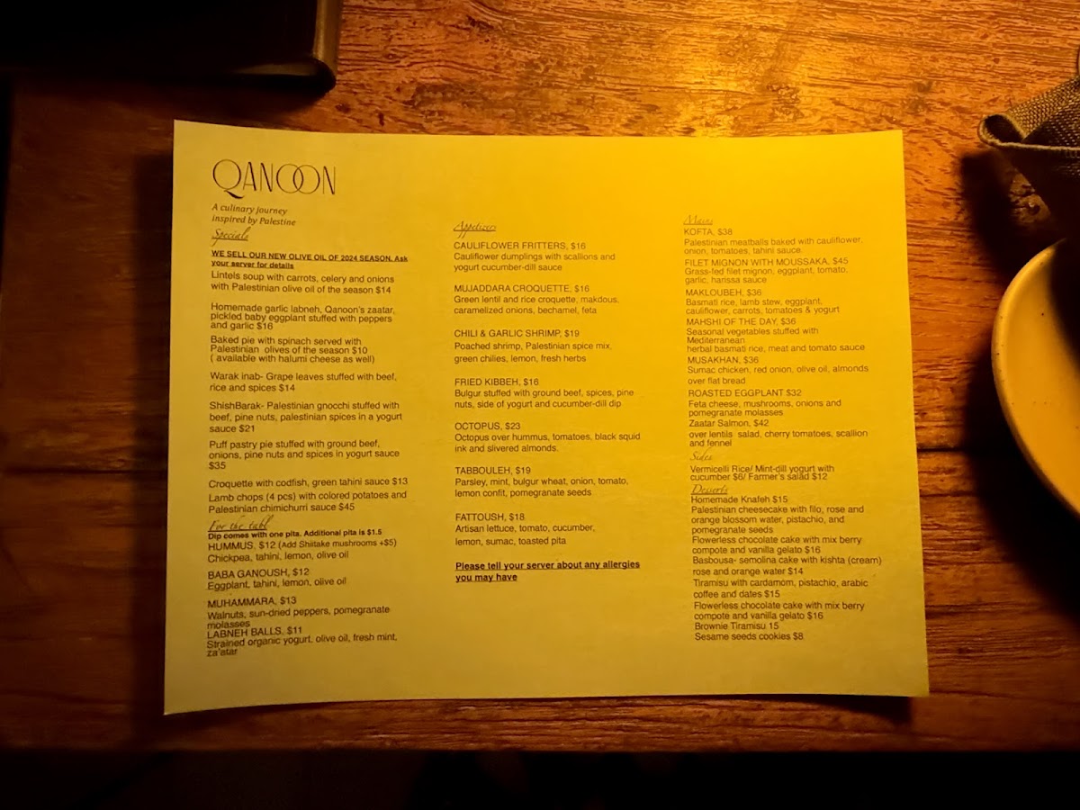 Poached shrimp, Palestinian spice mix, green chilies, lemon, fresh herbs.